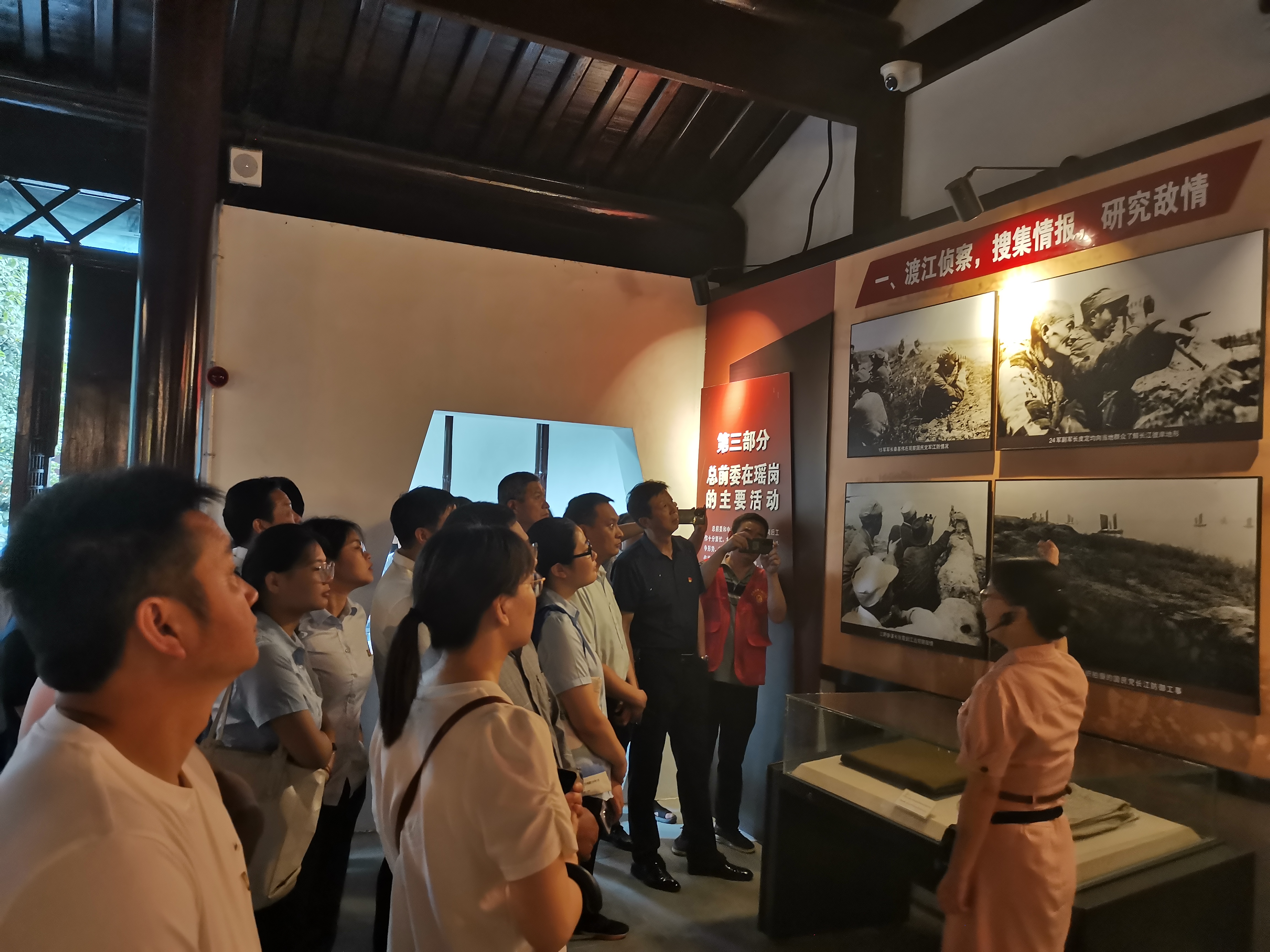 黨員們先后參觀了總前委參謀處舊址、渡江頌書畫展廳、瑤崗紅色文化長廊等展廳,在一件件浸潤著革命先烈智慧與汗水的文物、一組組記錄著偉大時(shí)刻的照片前,大家駐足觀看,深刻體會革命先輩們堅(jiān)定的革命信仰、奮戰(zhàn)到底的大無畏精神,深刻感念“聽黨話、跟黨走、念黨恩”的樸素情懷。