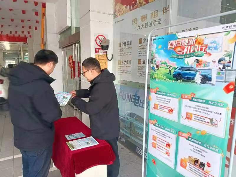 在售后服務大廳的客戶休息區(qū),公司設置了“車輛保養(yǎng)知識宣傳臺”,安排專業(yè)技師向客戶介紹車輛保養(yǎng)小知識和日常車輛使用常識。同時,為保障員工和廣大客戶生命財產(chǎn)安全,阜陽迎駕店邀請市經(jīng)開區(qū)交警隊開展安全駕駛教育,發(fā)放“0酒駕”宣傳冊,教育引導員工和客戶樹牢“開車不喝酒,喝酒不開車”的意識,并向所有進店的客戶、快遞和外賣小哥贈送口罩。
