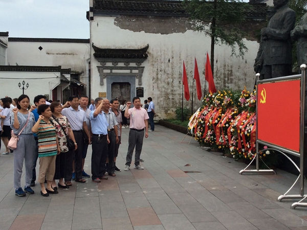 7月1日上午,在中國共產(chǎn)黨建黨95周年之際,績溪縣公司全體黨員及入黨積極分子在新四軍整編地、東進抗日出征地─巖寺─新四軍軍部舊址紀(jì)念館前,緬懷革命先烈,開展集體莊嚴(yán)宣誓,共同慶祝黨的生日。
