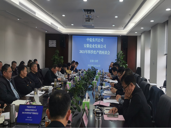 10月22日-23日,安徽鹽業(yè)發(fā)展公司2021年四季度經(jīng)營(yíng)工作推進(jìn)會(huì)暨產(chǎn)銷座談會(huì)在合肥召開。省鹽業(yè)集團(tuán)公司黨委委員、副總經(jīng)理王奇,中鹽東興營(yíng)銷中心總經(jīng)理王朝忠,發(fā)展公司、各市公司及生產(chǎn)企業(yè)相關(guān)人員參加會(huì)議。
