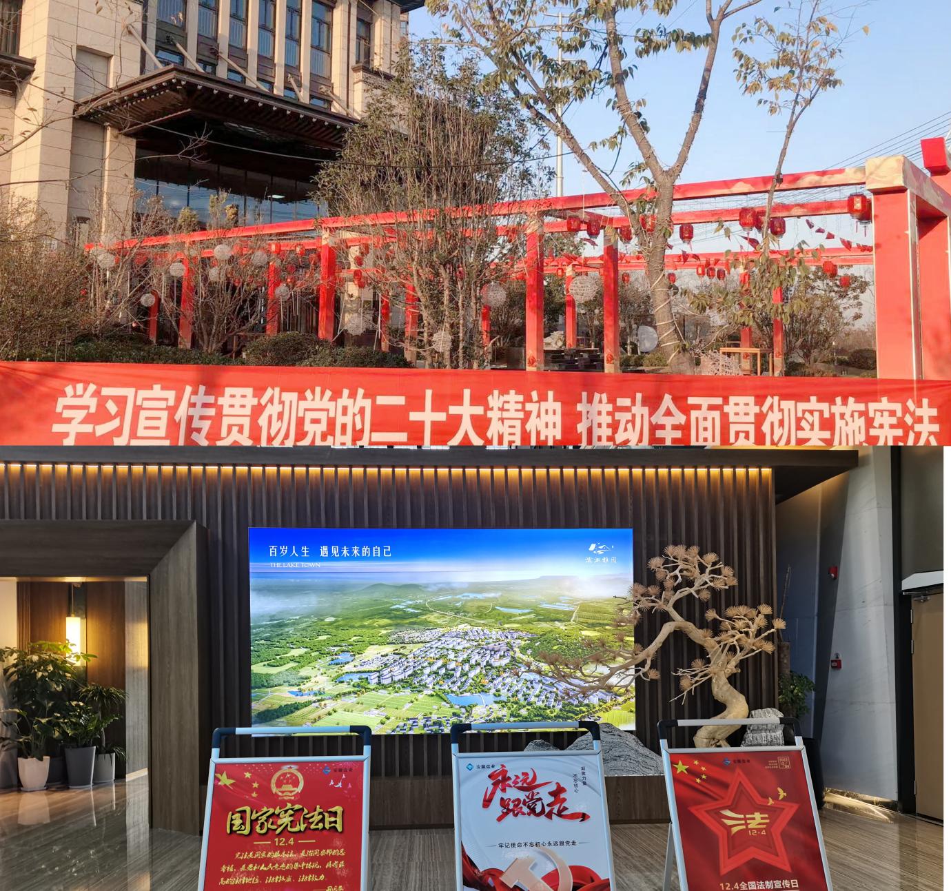 地產(chǎn)集團、健康養(yǎng)老公司、城市更新公司開展憲法合規(guī)主題講座,進行憲法知識測試;地產(chǎn)集團所屬項目公司組織員工閱讀憲法書籍,開展“憲法晨讀”活動,并在銷售現(xiàn)場設(shè)立憲法日宣傳展點。