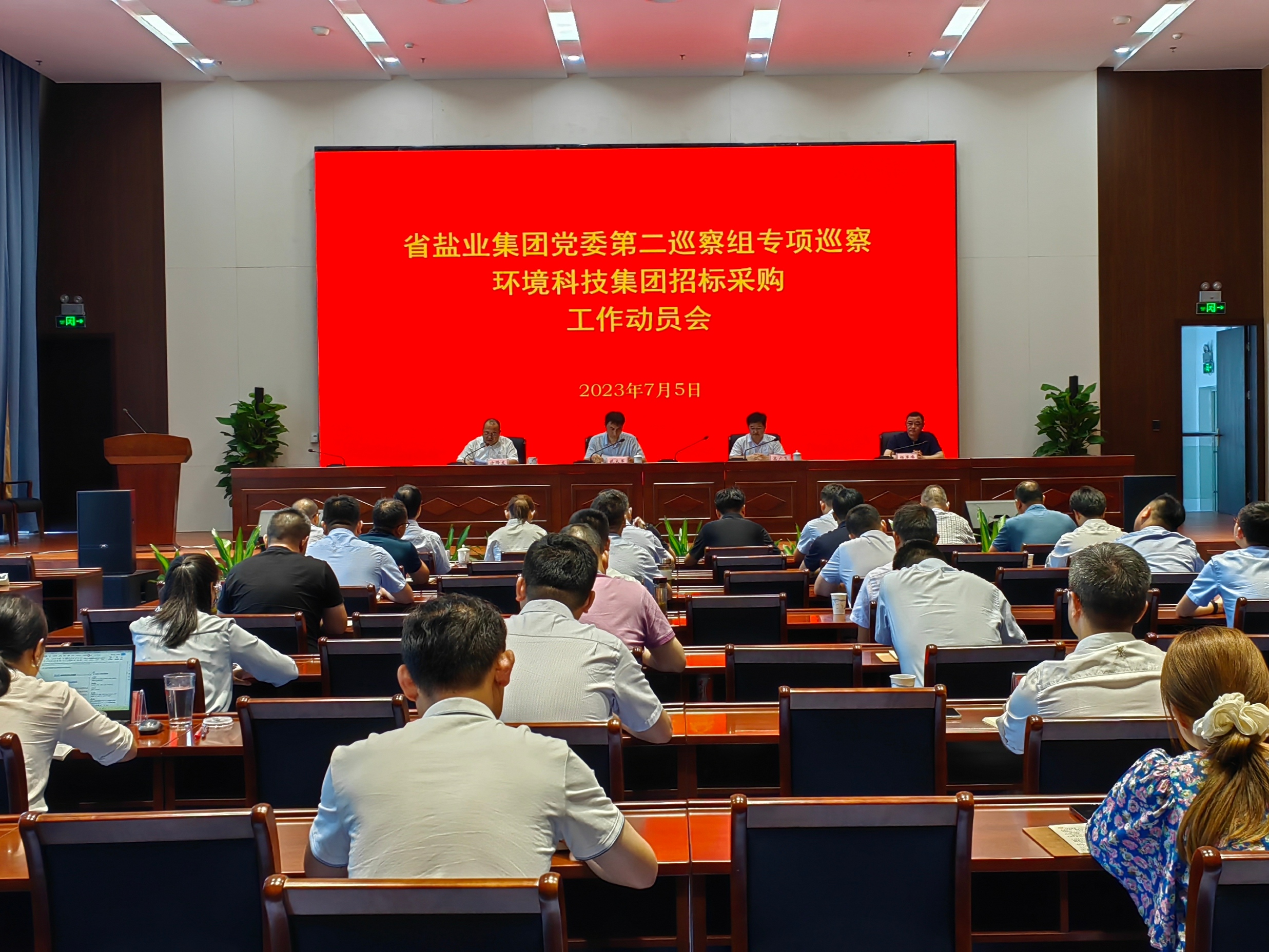 根據(jù)省鹽業(yè)集團黨委統(tǒng)一部署,7月5日,省鹽業(yè)集團黨委第二專項巡察組巡察環(huán)境科技集團招標采購工作動員會召開。會上,集團紀委副書記、黨委巡察辦主任武大軍傳達上級巡視巡察工作指示精神和集團黨委巡察工作部署要求;第二專項巡察組組長高廣飛通報巡察任務和總體安排,對配合巡察工作提出要求;環(huán)境科技集團黨委書記、董事長方降龍主持會議并做表態(tài)發(fā)言。第二專項巡察組成員,環(huán)境科技集團領導班子成員,各職能部門、所屬各單位負責人和部分職工代表參加會議。