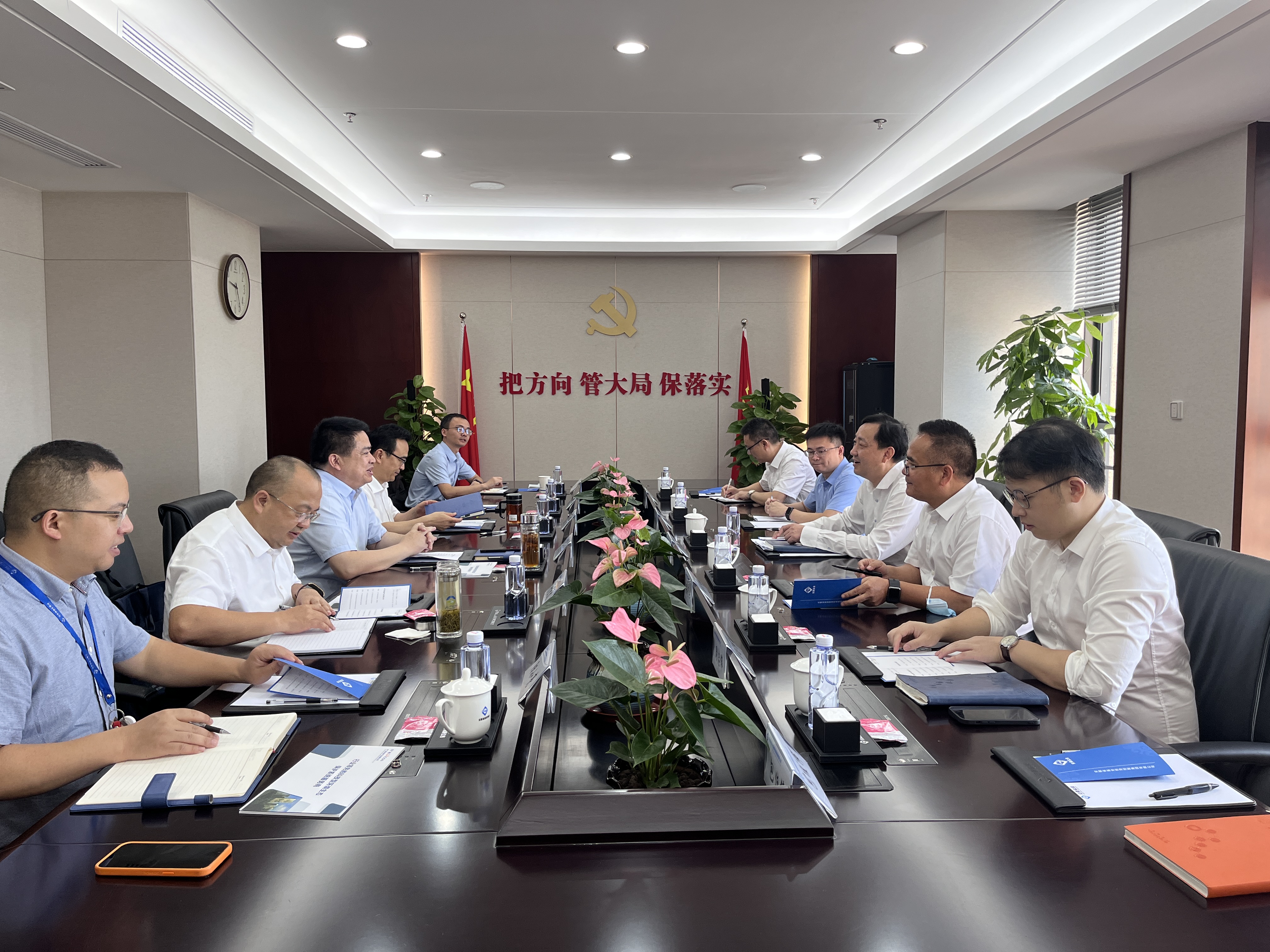羅太忠對李建新一行的到訪表示歡迎,介紹了省鹽業(yè)集團的發(fā)展歷程以及省生態(tài)環(huán)境產(chǎn)業(yè)集團戰(zhàn)略定位、發(fā)展理念、板塊布局。他表示,中廣核環(huán)保在水環(huán)境等領域技術(shù)優(yōu)勢明顯,希望以具體項目為起點,在資金、技術(shù)、人才等方面加強交流,共同打造標桿示范項目,形成可復制、可推廣的項目開發(fā)合作模式,共同推動安徽生態(tài)環(huán)保領域高質(zhì)量發(fā)展。