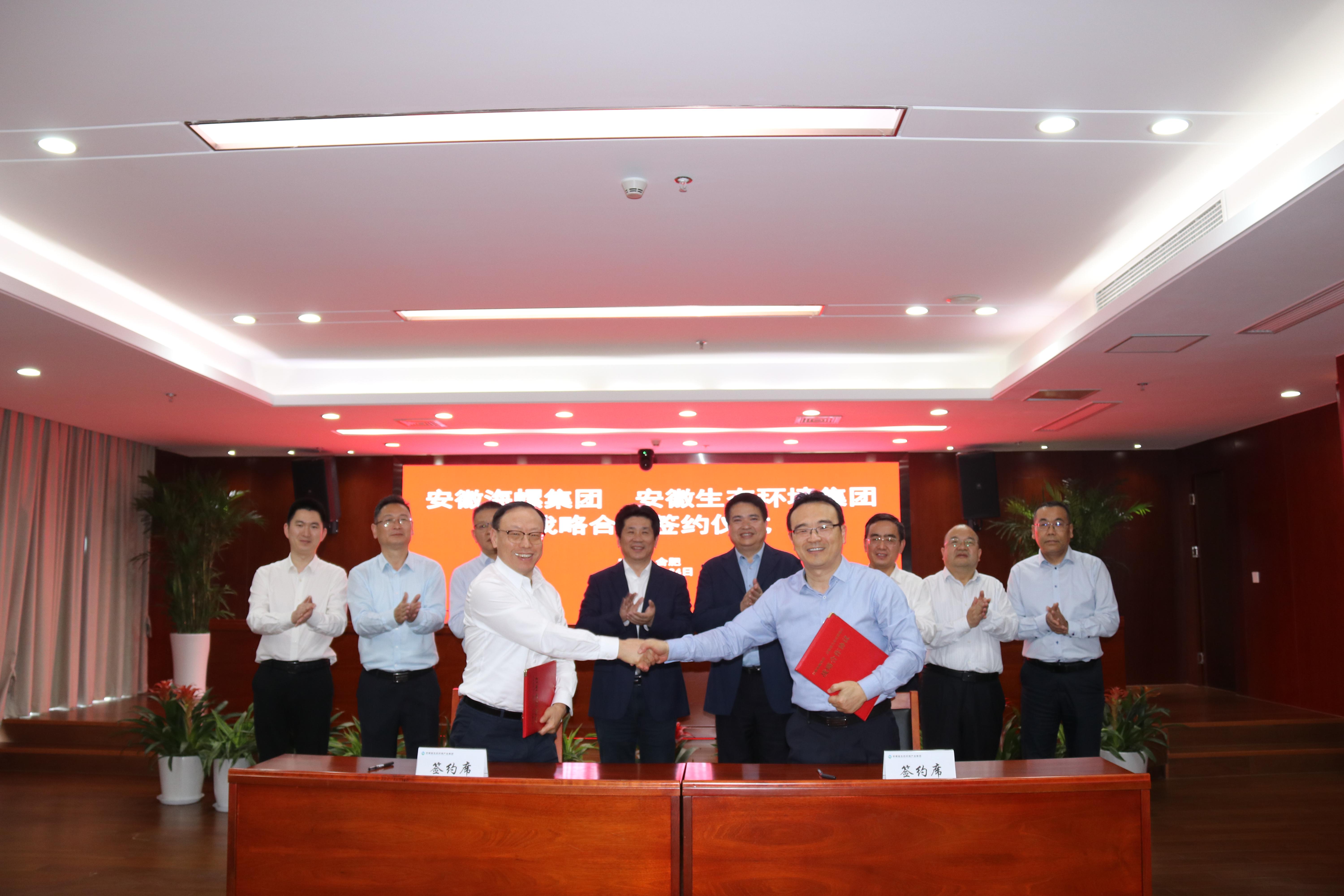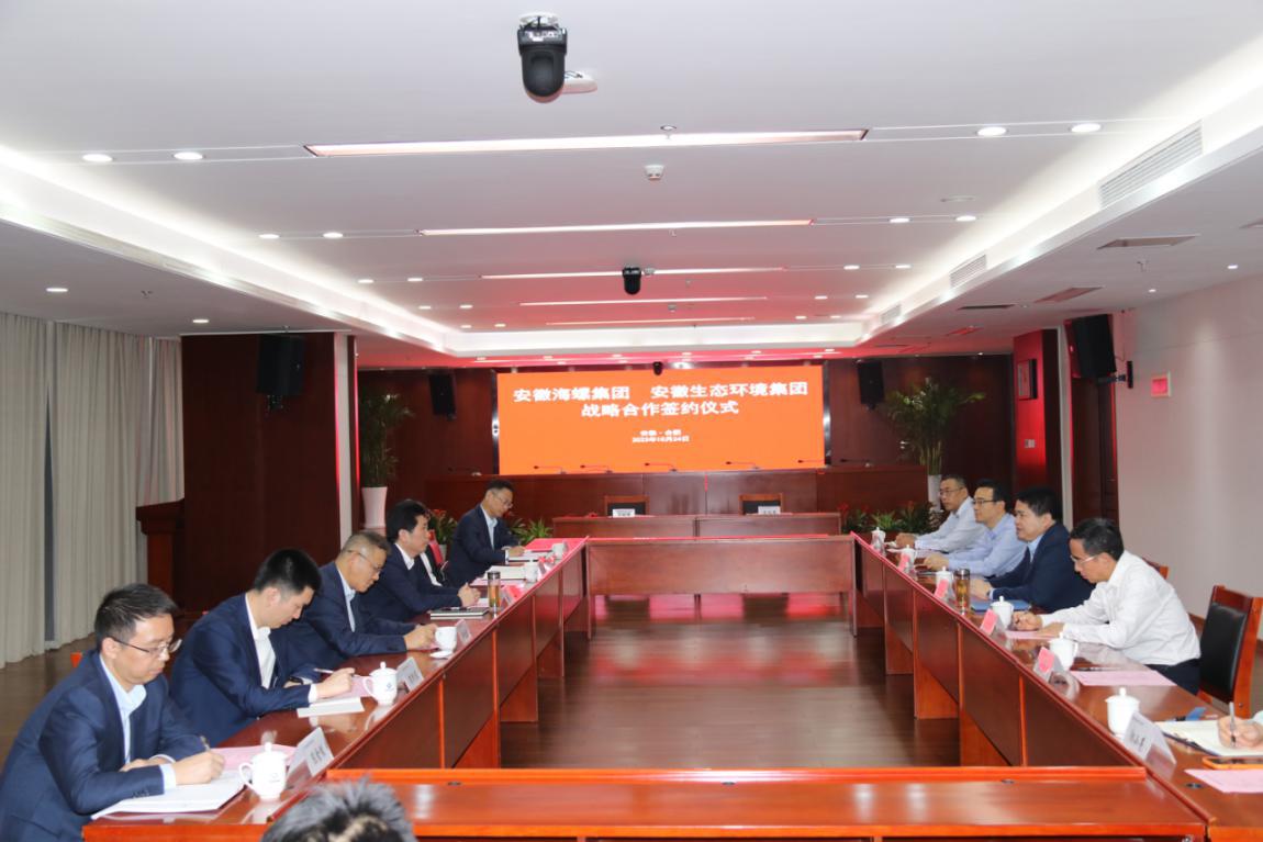 省生態(tài)環(huán)境集團(tuán)黨委委員、副總經(jīng)理王奇,海螺集團(tuán)黨委委員、副總經(jīng)理吳斌代表雙方簽署戰(zhàn)略合作協(xié)議。安徽環(huán)境科技集團(tuán)、安徽順朝公司、海螺水泥、海螺環(huán)保以及雙方有關(guān)部門負(fù)責(zé)同志參加會議。