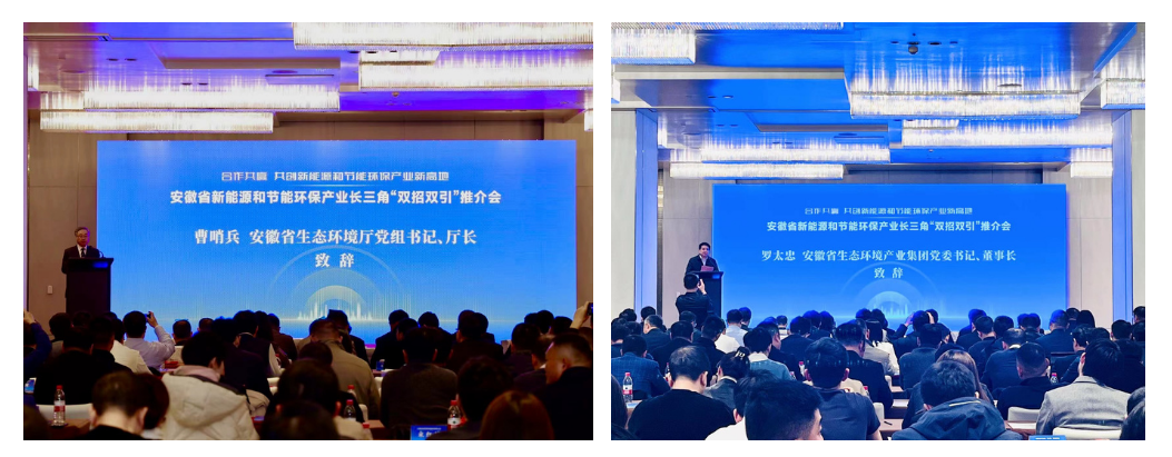 曹哨兵在致辭時指出,近年來,安徽省委、省政府緊緊圍繞打造新興產(chǎn)業(yè)聚集地的目標(biāo),大力推動十大新興產(chǎn)業(yè)聚鏈成群、集群成勢,建立了十大新興產(chǎn)業(yè)省級專班推進(jìn)機(jī)制,堅(jiān)持把“雙招雙引”作為產(chǎn)業(yè)發(fā)展新打法,在更大市場空間集聚資源。安徽省生態(tài)環(huán)境廳作為新能源和節(jié)能環(huán)保產(chǎn)業(yè)專班牽頭單位,聚焦新能源、高效節(jié)能、先進(jìn)環(huán)保、資源循環(huán)利用、碳中和五大領(lǐng)域,不斷優(yōu)化營商環(huán)境、完善涉企服務(wù)、加強(qiáng)要素保障,產(chǎn)業(yè)發(fā)展勢頭強(qiáng)勁。