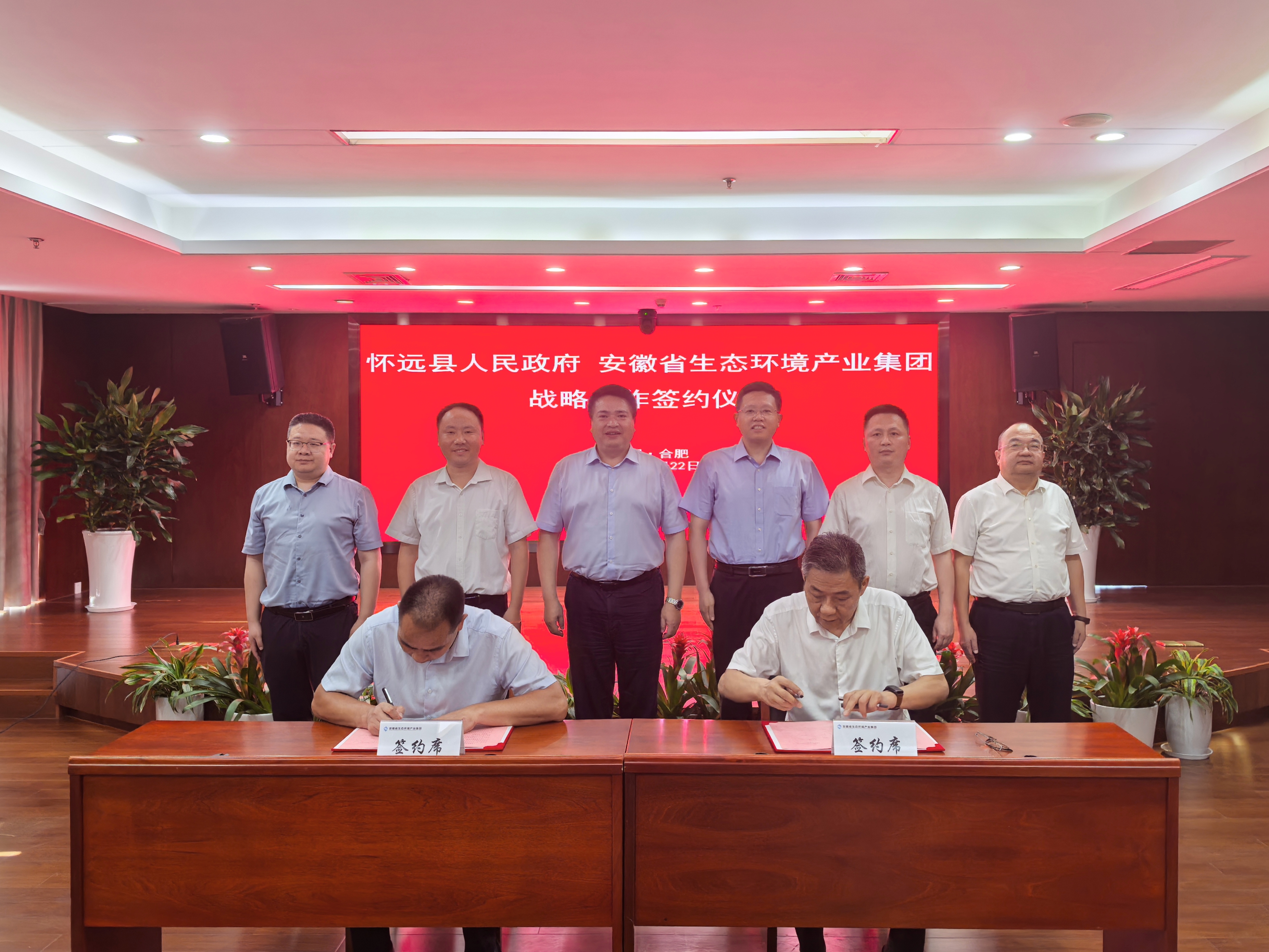 7月22日,省生態(tài)環(huán)境產(chǎn)業(yè)集團(tuán)與懷遠(yuǎn)縣簽署戰(zhàn)略合作協(xié)議。省生態(tài)環(huán)境產(chǎn)業(yè)集團(tuán)黨委書記、董事長羅太忠與蚌埠市委常委、懷遠(yuǎn)縣委書記潘君齊出席簽約儀式并見證簽約。