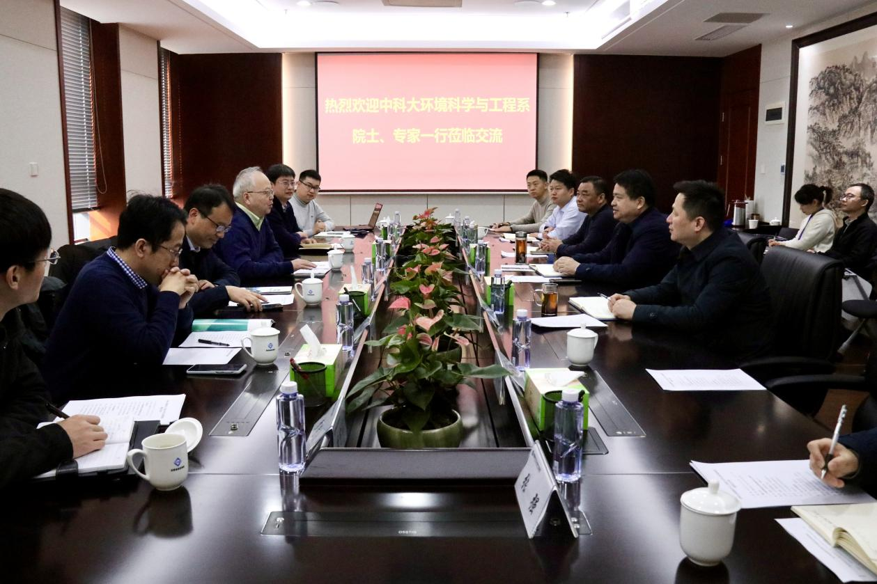 中國科學(xué)技術(shù)大學(xué)環(huán)境科學(xué)與工程系主任穆楊、副主任劉賢偉及任沖研究員等,省生態(tài)環(huán)境集團(tuán)黨委委員、副總經(jīng)理繆磊及投資發(fā)展部、安徽環(huán)境科技集團(tuán)負(fù)責(zé)同志參加座談。