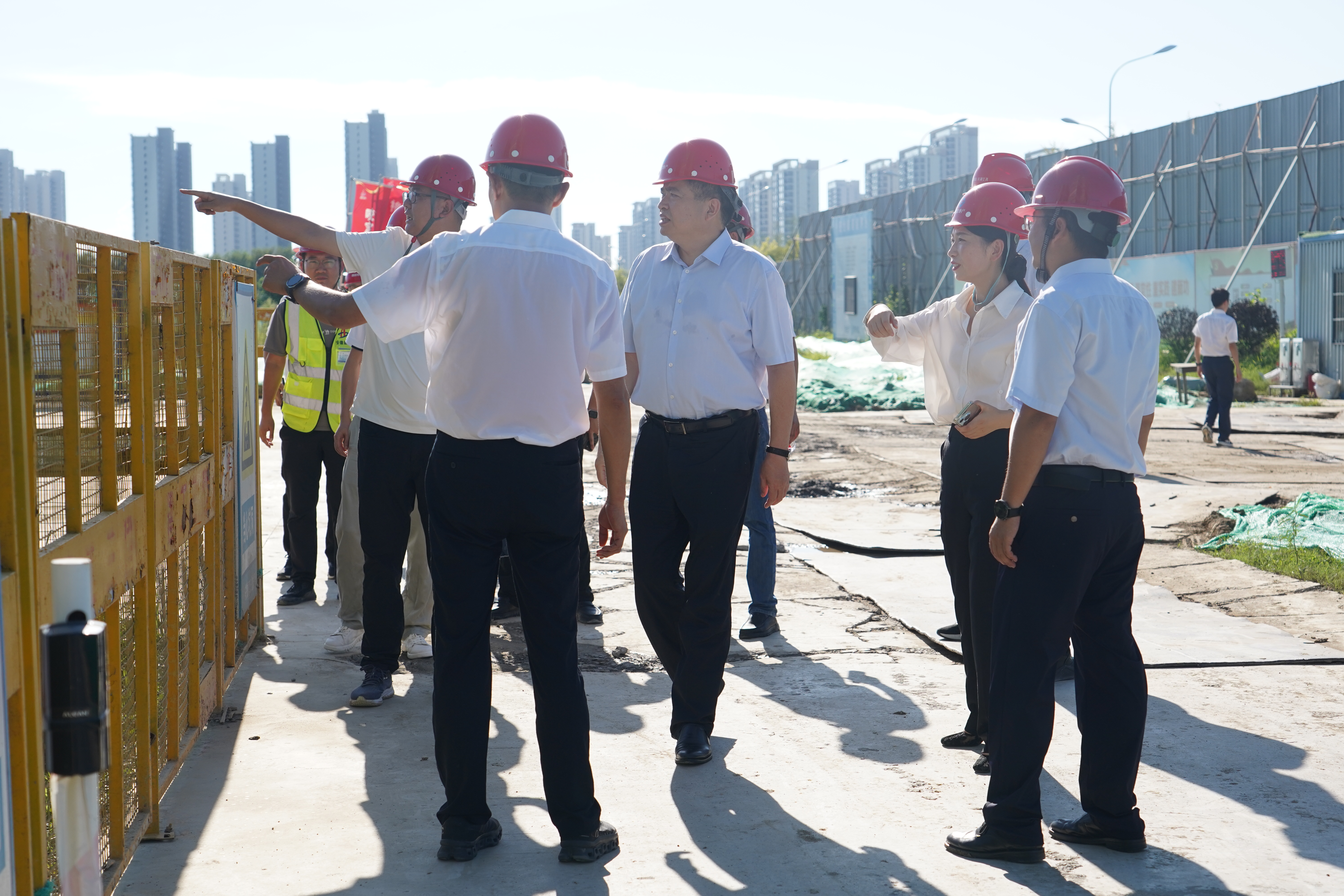 抵達項目現(xiàn)場后,羅太忠為奮戰(zhàn)在高溫一線的干部職工送上防暑降溫物資,感謝他們的辛勤付出。在項目營銷中心和二展示范區(qū),羅太忠詳細了解項目進度與銷售去化情況,現(xiàn)場查驗項目工藝工法,強調要以高標準工藝鑄造國企質量和安全建設標桿。在施工工地,羅太忠實地了解施工建設進度和高溫作息安排,仔細檢查施工安全風險點。他指出,安全生產責任重于泰山,高溫天氣下更要擰緊責任鏈條。各建設單位要進一步壓實主體責任,針對高溫作業(yè)特點細化安全防控措施,加強設備巡檢和安全培訓,確保每一項防控舉措都有人抓、有人管、有實效。要進一步加強施工組織和管理,科學合理安排作業(yè)時間,嚴格落實防暑降溫措施,科學統(tǒng)籌工程質量和施工進度。要嚴格執(zhí)行原材料進場驗收制度,嚴防高溫高濕環(huán)境下引發(fā)的質量隱患。要強化隱患排查整治,尤其要高度重視現(xiàn)場塔吊等大型設備、臨邊防護、深基坑作業(yè)等安全防范措施,堅決防范各類安全事故發(fā)生。要以高品質產品和服務,為地方經濟建設和人居建設貢獻國企力量。
