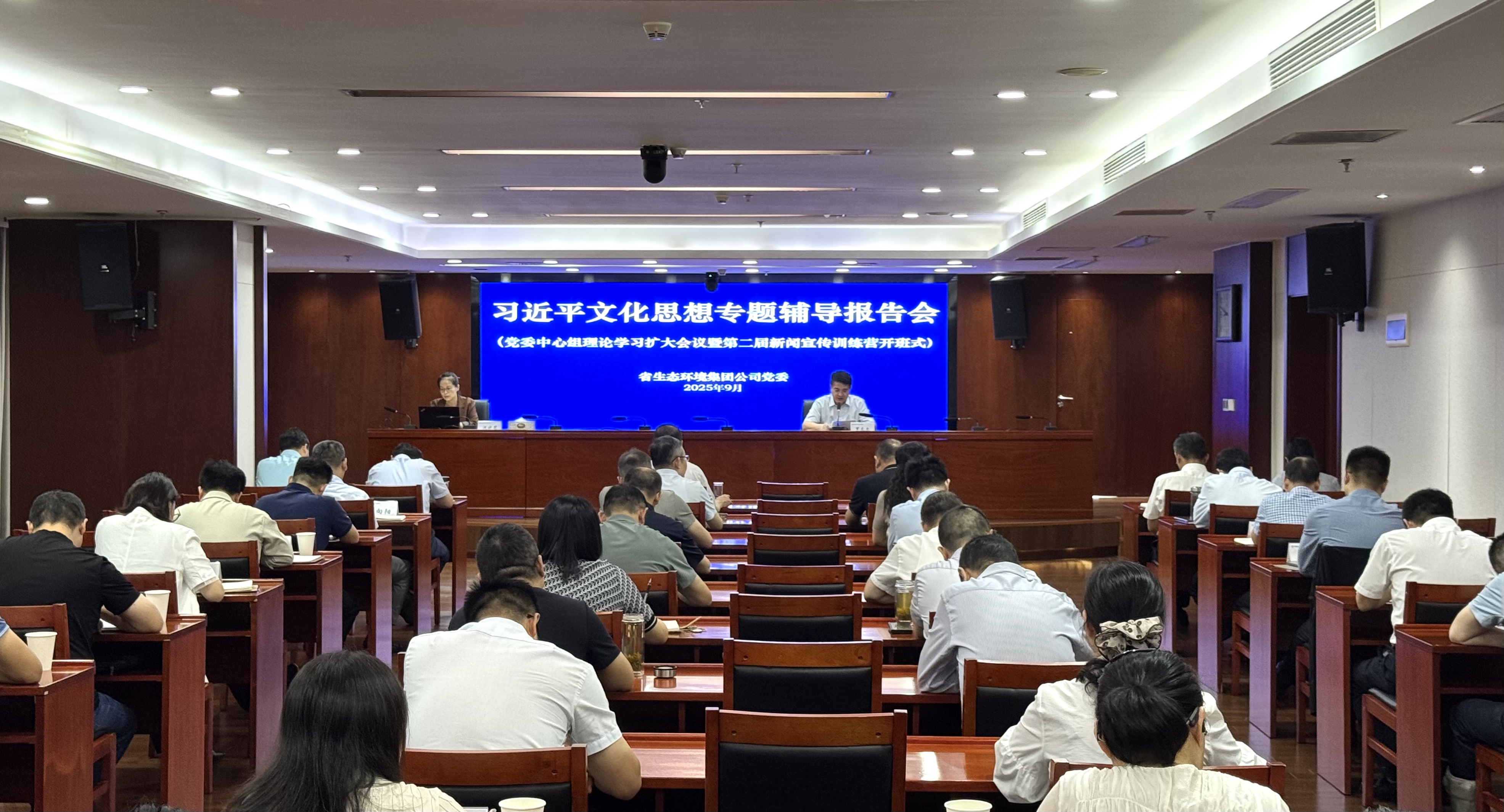 9月18日至19日,省生態(tài)環(huán)境集團(tuán)舉辦第二屆新聞宣傳訓(xùn)練營,集團(tuán)公司黨委、經(jīng)營班子成員,各直屬(控股)公司主要負(fù)責(zé)同志、宣傳思想文化工作分管領(lǐng)導(dǎo)、職能部門負(fù)責(zé)人、宣傳工作人員,集團(tuán)本部部門主要負(fù)責(zé)人以及集團(tuán)一線通訊員代表等60余人參加培訓(xùn)。集團(tuán)公司黨委書記、董事長羅太忠作開班動員講話。