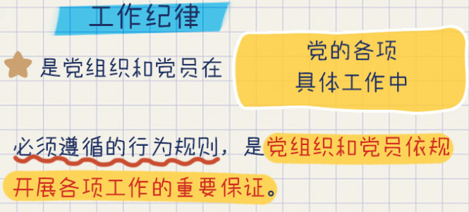 工作紀(jì)律是各級(jí)黨組織和廣大黨員在工作中必須遵循的行為規(guī)范,是確保我們黨的各項(xiàng)工作沿著正確方向開(kāi)展的必然要求。