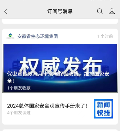 集團及部分子企業(yè)通過張貼普法宣傳海報、微信公眾號及普法專欄發(fā)布國家安全教育普法材料、組織員工參與在線答題,通過投屏播放宣傳視頻的方式積極引導員工增強國家安全意識和法治觀念。