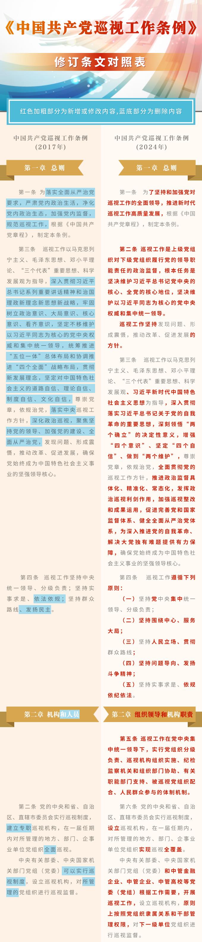 《中國(guó)共產(chǎn)黨巡視工作條例》修訂條文對(duì)照表