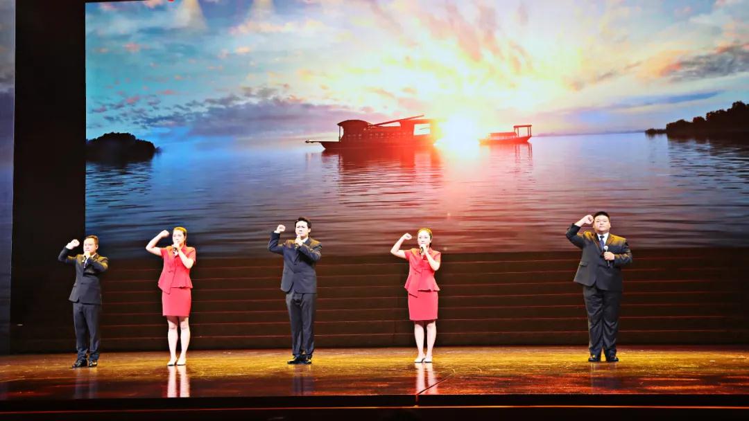 “我們在燦爛陽光下,跟著共產(chǎn)黨,建設大中國……”,氣勢恢宏的大合唱《在燦爛陽光下》拉開了匯演的序幕。音樂詩《紅船頌》、情景表演《過雪山草地》、舞蹈《映山紅》、歌舞《追尋》展現(xiàn)了中國共產(chǎn)黨人百年接續(xù)奮斗,團結帶領人民開辟偉大道路、建立偉大功業(yè)、鑄就偉大精神。舞蹈《心聲》、黃梅大鼓《光輝禮贊》、情景合唱《咱們工人有力量》、朗誦《安徽脊梁、改革遠航》、音舞踢踏快板《高質(zhì)量發(fā)展新征程》、情景劇《一路有我》再現(xiàn)了省屬企業(yè)在中國共產(chǎn)黨領導下,以黨的旗幟為旗幟,以黨的方向為方向,以黨的意志為意志,矢志奮斗,堅定不移做強做優(yōu)做大國有資本和國有企業(yè),為促進全省經(jīng)濟社會持續(xù)健康發(fā)展的奮斗歷程。歌舞《我們都是追夢人》《燈火里的中國》《不忘初心》,深情表達省屬企業(yè)干部職工的使命夢想和家國情懷。演出精彩紛呈,高潮迭起,歌聲、樂聲、掌聲烘托出熱烈的喜慶氛圍。匯演在全場同唱《沒有共產(chǎn)黨就沒有新中國》歌聲中落下帷幕。
