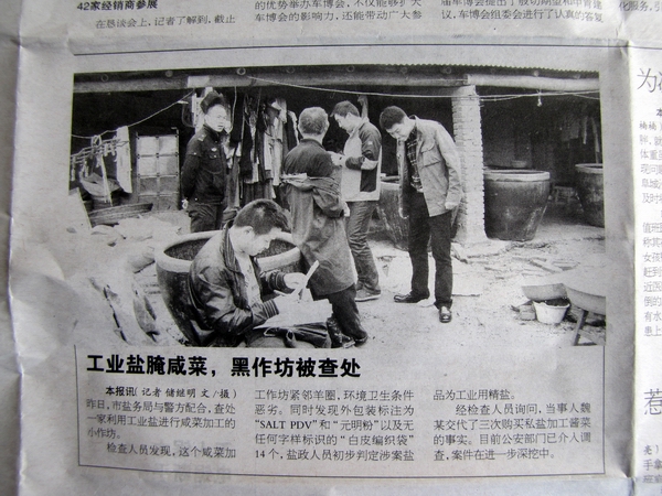 本報(bào)訊(記者 儲(chǔ)繼明 文/攝)昨日,市鹽務(wù)局與警方配合,查處一家利用工業(yè)鹽進(jìn)行咸菜加工的小作坊。