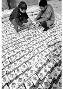 今年5月起,蒙城縣鹽務(wù)局鹽政稽查大隊和公安部門聯(lián)手,歷時5個多月,破獲一起加工銷售假冒綠色食品鹽的團(tuán)伙案,抓獲違法犯罪嫌疑人12人,案件涉及假冒綠色食品鹽600余噸。該案涉及皖蘇豫三省以及蒙城、亳州等六縣(市),時間跨度達(dá)6年之久。圖為11月6日,蒙城縣鹽政執(zhí)法人員在查看清點收繳的私鹽。