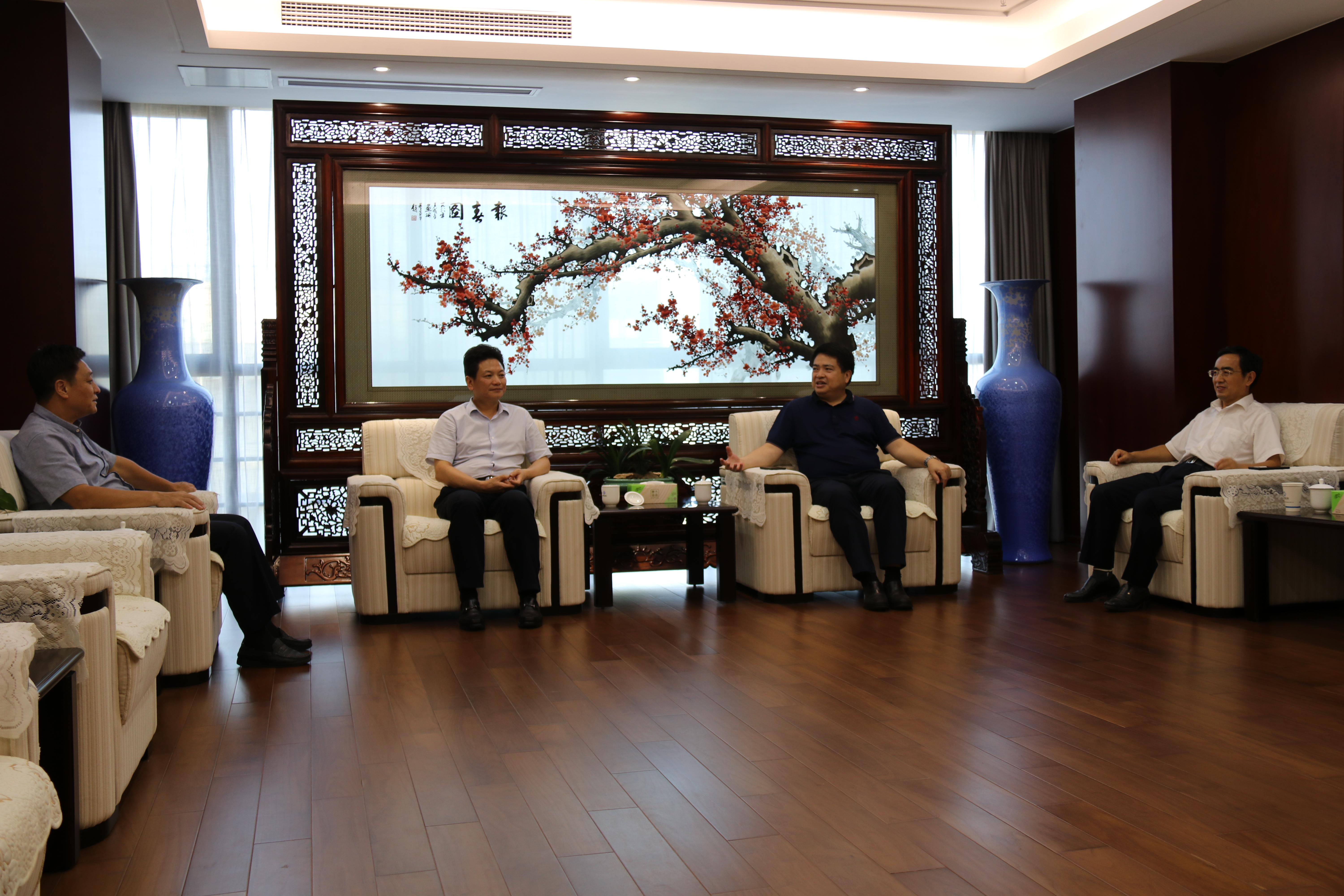 9月10日下午,省鹽業(yè)集團(tuán)黨委書記、董事長羅太忠,黨委副書記、董事、總經(jīng)理王思軍會(huì)見來訪的皖能集團(tuán)黨委副書記、董事、總經(jīng)理李明,黨委委員、紀(jì)委書記、監(jiān)察專員魏洪文一行。