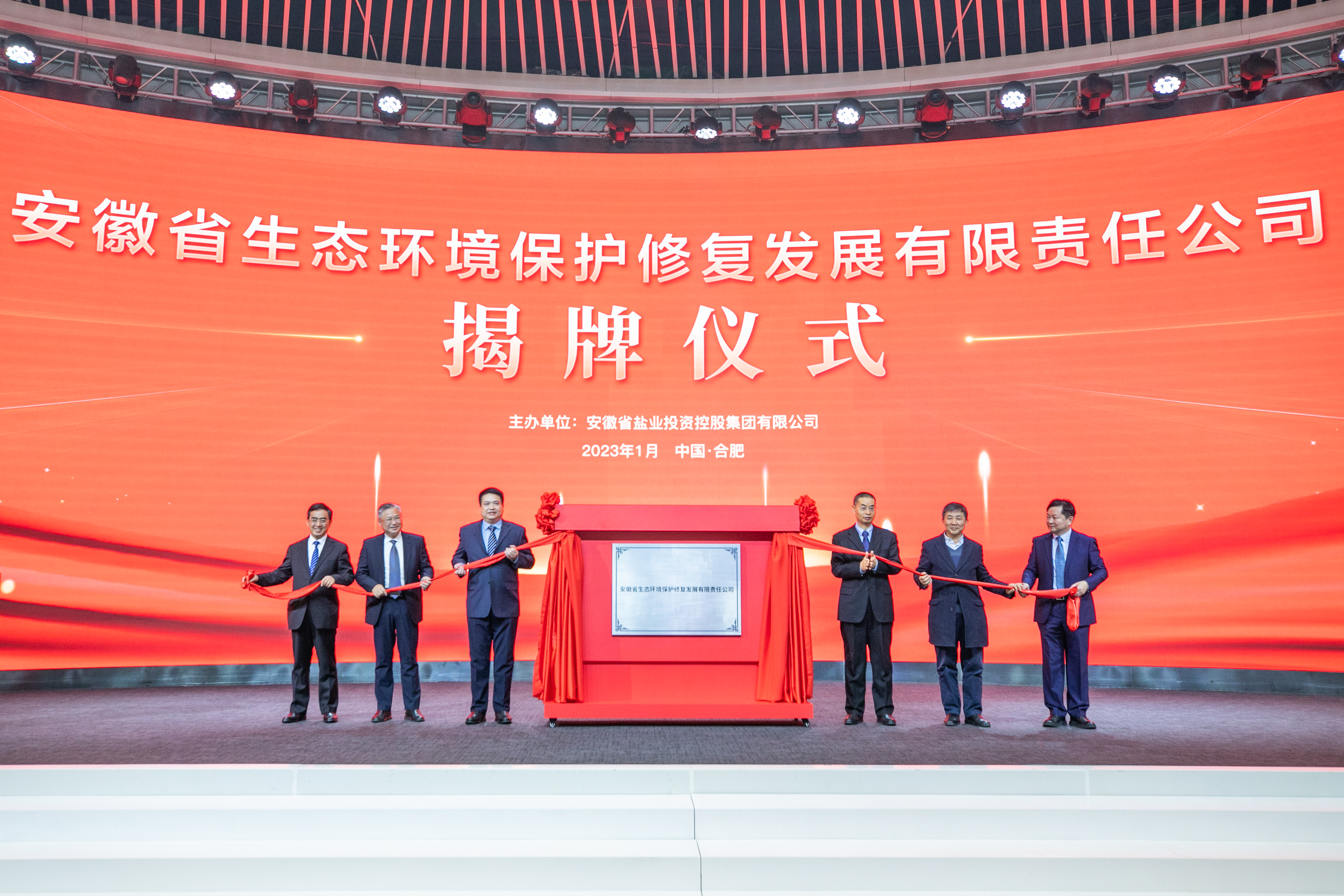 1月11日上午,安徽省生態(tài)環(huán)境保護(hù)修復(fù)發(fā)展有限責(zé)任公司揭牌儀式在合肥市高新區(qū)中安創(chuàng)谷科技園全球路演中心舉行。省自然資源廳一級巡視員夏炎,省生態(tài)環(huán)境廳二級巡視員阮敏,合肥市高新區(qū)黨工委書記、管委會主任宋道軍,省鹽業(yè)集團(tuán)黨委書記、董事長羅太忠,黨委副書記、總經(jīng)理、董事王思軍,安徽省生態(tài)環(huán)境保護(hù)修復(fù)發(fā)展有限責(zé)任公司執(zhí)行董事、總經(jīng)理王剛出席儀式并為公司揭牌。儀式由王思軍主持。
