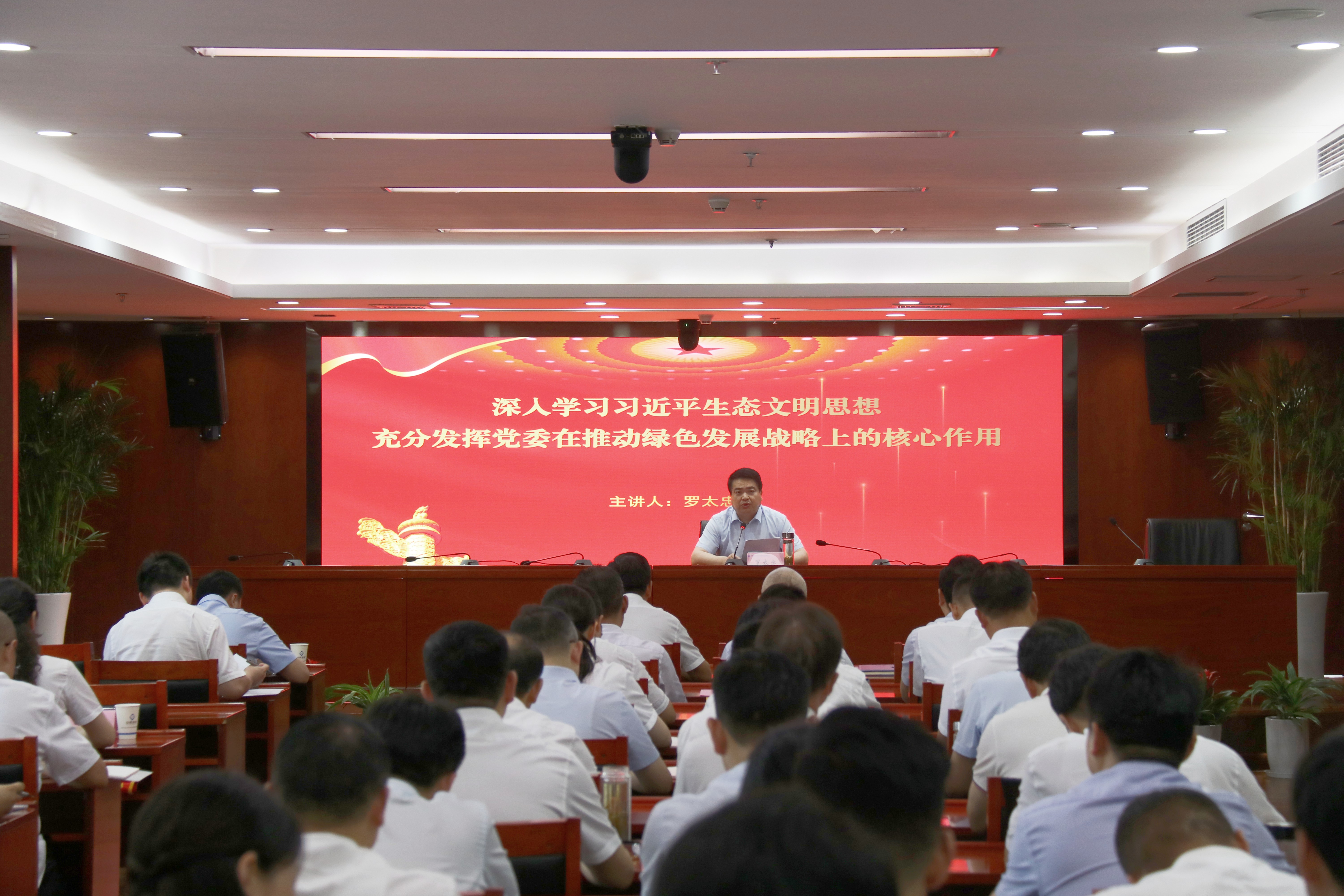 羅太忠以“深入學(xué)習(xí)習(xí)近平生態(tài)文明思想,充分發(fā)揮黨委在推動(dòng)綠色發(fā)展戰(zhàn)略上的核心作用”為題作專題黨課報(bào)告,從深刻理解和把握習(xí)近平新時(shí)代中國特色社會(huì)主義思想所蘊(yùn)含的觀點(diǎn)立場方法、深刻理解和把握黨的二十大的戰(zhàn)略部署和目標(biāo)任務(wù)、深刻理解和把握習(xí)近平總書記關(guān)于本地區(qū)本部門本領(lǐng)域的重要講話、重要指示批示精神以及集團(tuán)公司未來發(fā)展的戰(zhàn)略和路徑等方面,詳細(xì)闡述了習(xí)近平新時(shí)代中國特色社會(huì)主義思想理論的精髓,明確了集團(tuán)公司轉(zhuǎn)型生態(tài)環(huán)境產(chǎn)業(yè)的具體路徑,進(jìn)一步統(tǒng)一了思想、凝聚了共識。羅太忠在報(bào)告中指出,黨的二十大將“生態(tài)環(huán)境保護(hù)發(fā)生歷史性、轉(zhuǎn)折性、全局性變化”作為新時(shí)代十年偉大變革之一,將“促進(jìn)人與自然和諧共生”作為中國式現(xiàn)代化本質(zhì)要求的重要內(nèi)容。要深刻領(lǐng)會(huì)習(xí)近平生態(tài)文明思想和習(xí)近平總書記關(guān)于綠色發(fā)展的重要論述,充分把握貫徹落實(shí)綠色發(fā)展戰(zhàn)略的重大意義,進(jìn)一步增強(qiáng)推動(dòng)集團(tuán)公司轉(zhuǎn)型生態(tài)環(huán)境產(chǎn)業(yè)的使命感、責(zé)任感和緊迫感。要學(xué)深悟透習(xí)近平新時(shí)代中國特色社會(huì)主義思想,更好運(yùn)用貫穿其中的立場、觀點(diǎn)、方法指導(dǎo)推動(dòng)工作,進(jìn)一步提升政治能力、思維能力、實(shí)踐能力,把習(xí)近平總書記關(guān)于推進(jìn)生態(tài)文明、建設(shè)美麗中國的指示精神落到實(shí)處。