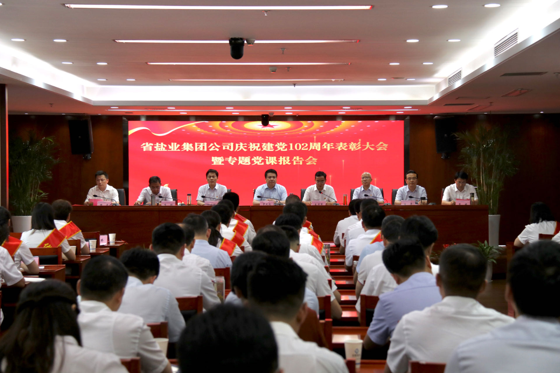 6月29日下午,省鹽業(yè)集團(tuán)公司召開慶祝建黨102周年表彰大會(huì)暨專題黨課報(bào)告會(huì)。集團(tuán)公司黨委書記、董事長羅太忠出席會(huì)議并作專題黨課報(bào)告。省委主題教育第十三指導(dǎo)組相關(guān)同志列席指導(dǎo)。集團(tuán)公司黨委副書記、總經(jīng)理、董事王思軍主持大會(huì)。
