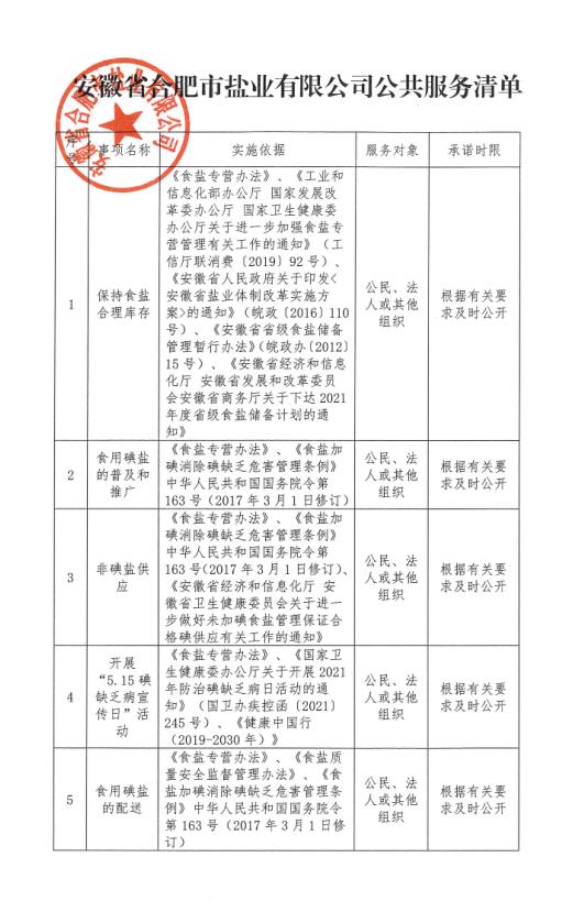 安徽省合肥市鹽業(yè)有限公司公共服務清單