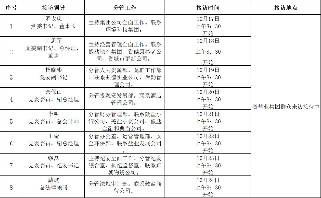 三、省鹽業(yè)集團(tuán)領(lǐng)導(dǎo)接訪安排