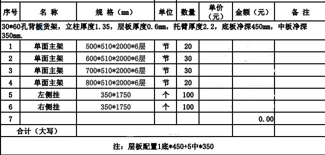 1.采購(gòu)規(guī)模標(biāo)準(zhǔn):100個(gè)貨架。