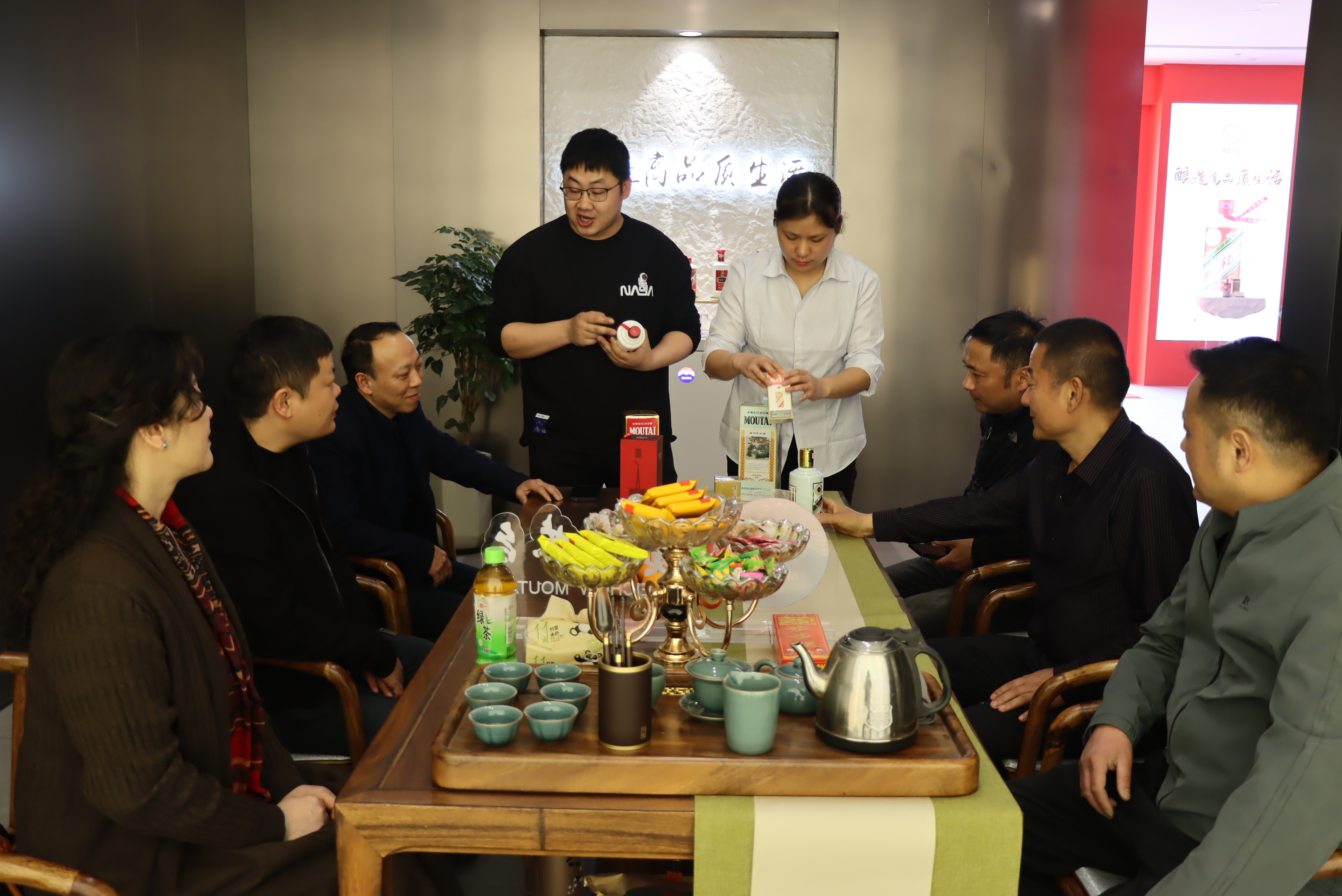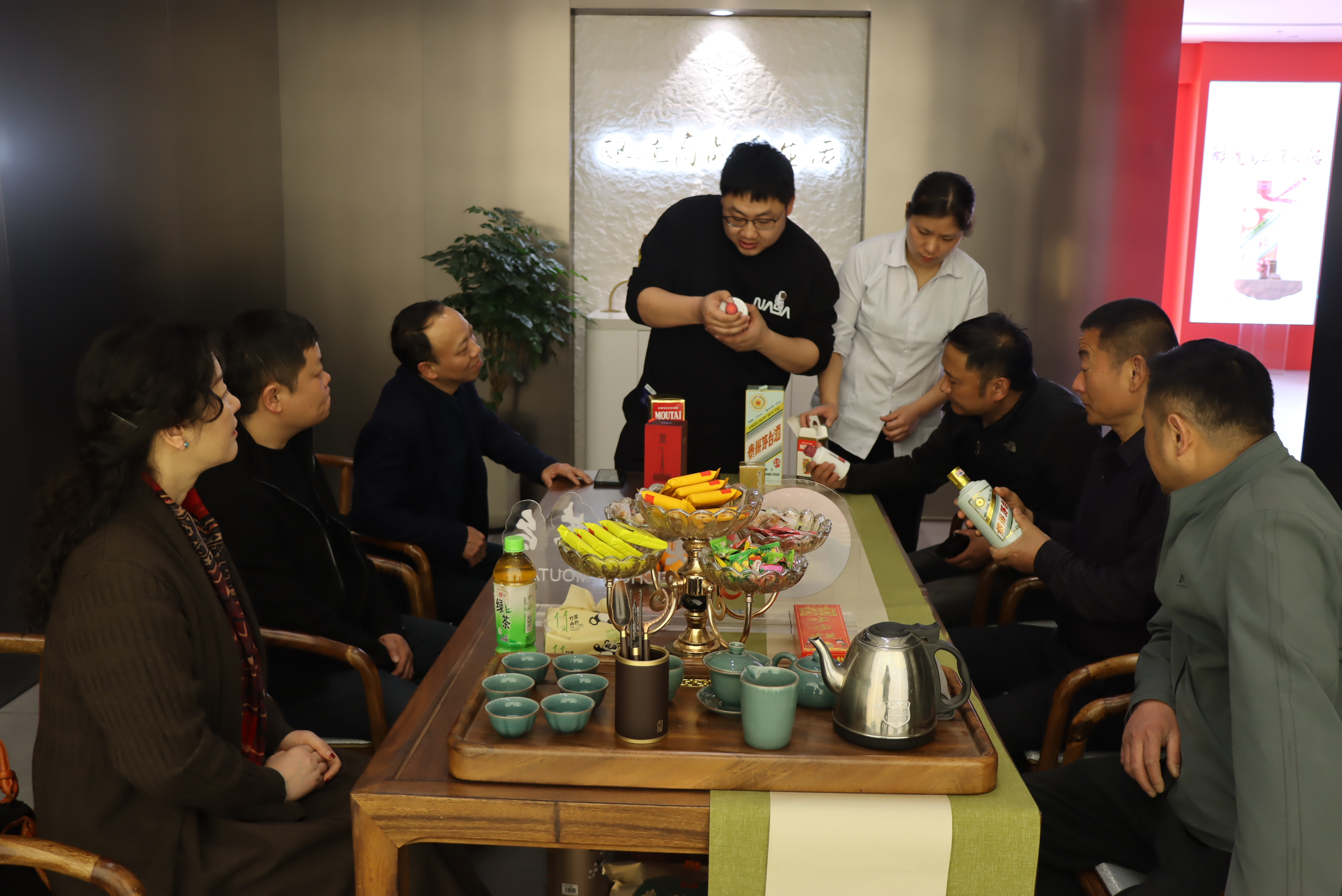 活動中,專賣店店員為客戶們詳細介紹了i茅臺線上產(chǎn)品,宣傳茅臺知識,貴州茅臺酒品質(zhì)卓越,具有“醬香突出、幽雅細膩、酒體醇厚、回味悠長、空杯留香持久”的酒體特點,茅臺酒的香氣特征被剖析為9大類香氣,包括:花香、水果香、青草香、甜香、焙烤香、干植物香、醬香、酸香及其它香氣,這些呈現(xiàn)不同香氣特征的物質(zhì)組成了茅臺酒復雜的香氣特征。其以獨特高品質(zhì)的釀造工藝成為中國白酒的“活化石”。中國大曲醬香型的代表和鼻祖。在中國酒文化中占據(jù)極為重要的地位。