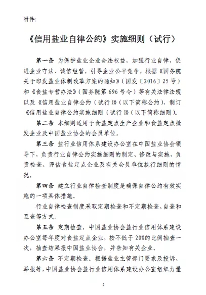 信用鹽業(yè)自律公約實施細則