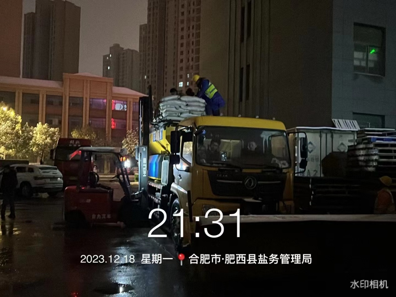 為應對此次低溫雨雪冰凍災害,合肥一市五縣干部職工,不畏艱苦、不畏嚴寒,“浴”雪奮戰(zhàn),共為保障供應融雪鹽1782噸。目前,各單位供應平穩(wěn)有序,庫存保障充足,能夠滿足極端天氣下的融雪需求。