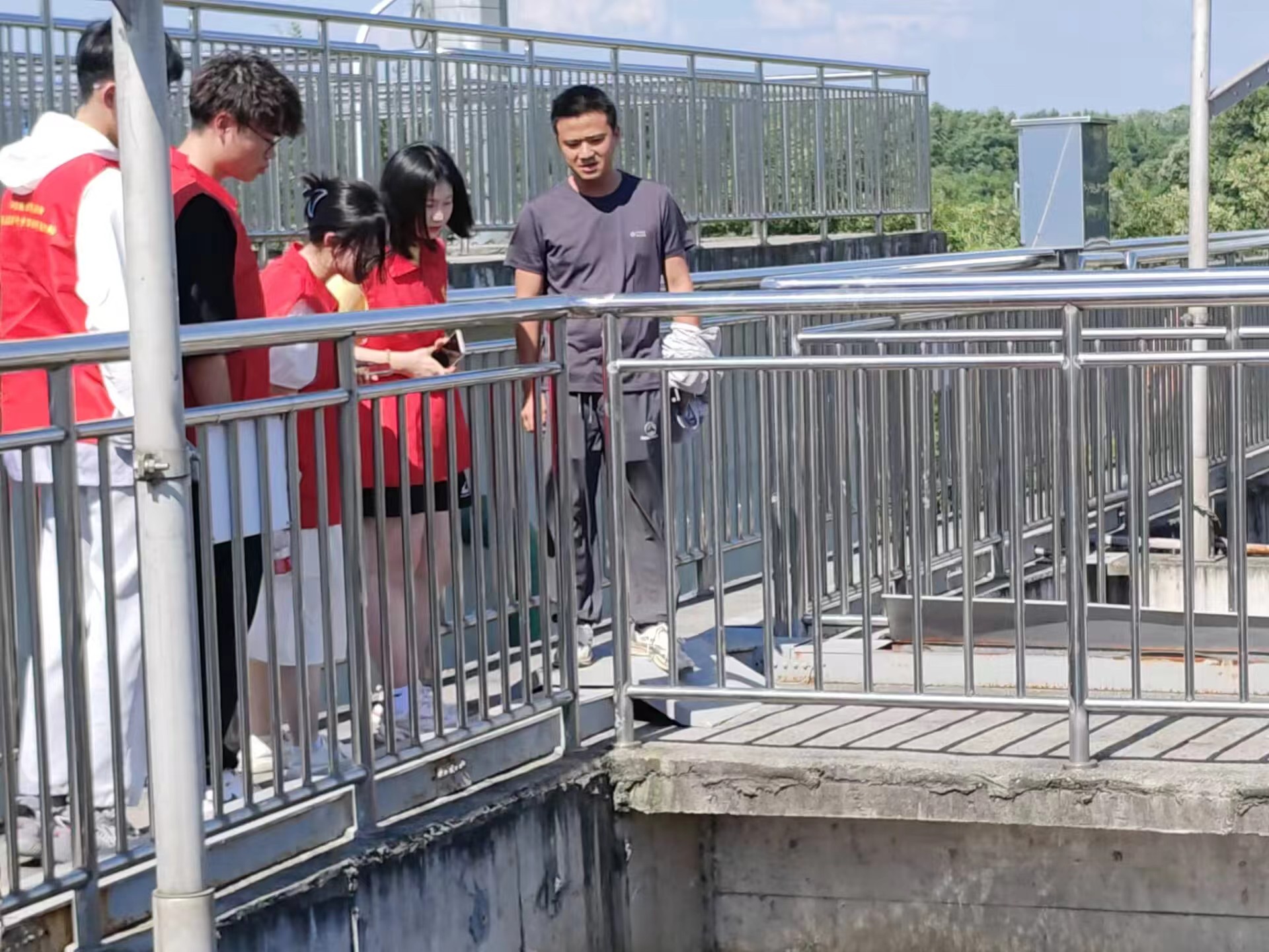 7月4日下午,河海大學(xué)志愿者一行到環(huán)境科技集團(tuán)所屬項目公司立弘水務(wù)開展江蘇省大學(xué)生在行動暨志愿者千鄉(xiāng)萬村環(huán)??破招袆?。