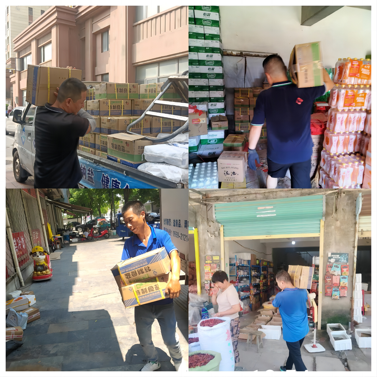 伴隨著清晨的第一縷陽光,各市縣鹽業(yè)公司已經(jīng)是一片繁忙景象,車輛檢查、鹽品出入庫、貨物裝卸等工作都在有條不紊地進(jìn)行。鹽品裝車完成后,安徽鹽業(yè)的配送員工們熟練地駕駛著貨車,沿著既定路線出發(fā),開始了一天的配送工作。作為事關(guān)國計(jì)民生的產(chǎn)品,我們深知食鹽對于每個家庭的重要性,這不僅僅是做簡單的配送工作,更是肩負(fù)保障民生的責(zé)任。每到達(dá)一個終端網(wǎng)點(diǎn),配送員工們都要將一箱箱食鹽從車上搬運(yùn)到店內(nèi)擺放整齊,臉上的汗水不斷滴落,身上的衣服濕了干、干了濕,鹽業(yè)人的辛勤付出不僅保證了市場的穩(wěn)定供應(yīng),也為社會的和諧發(fā)展貢獻(xiàn)了一份力量。