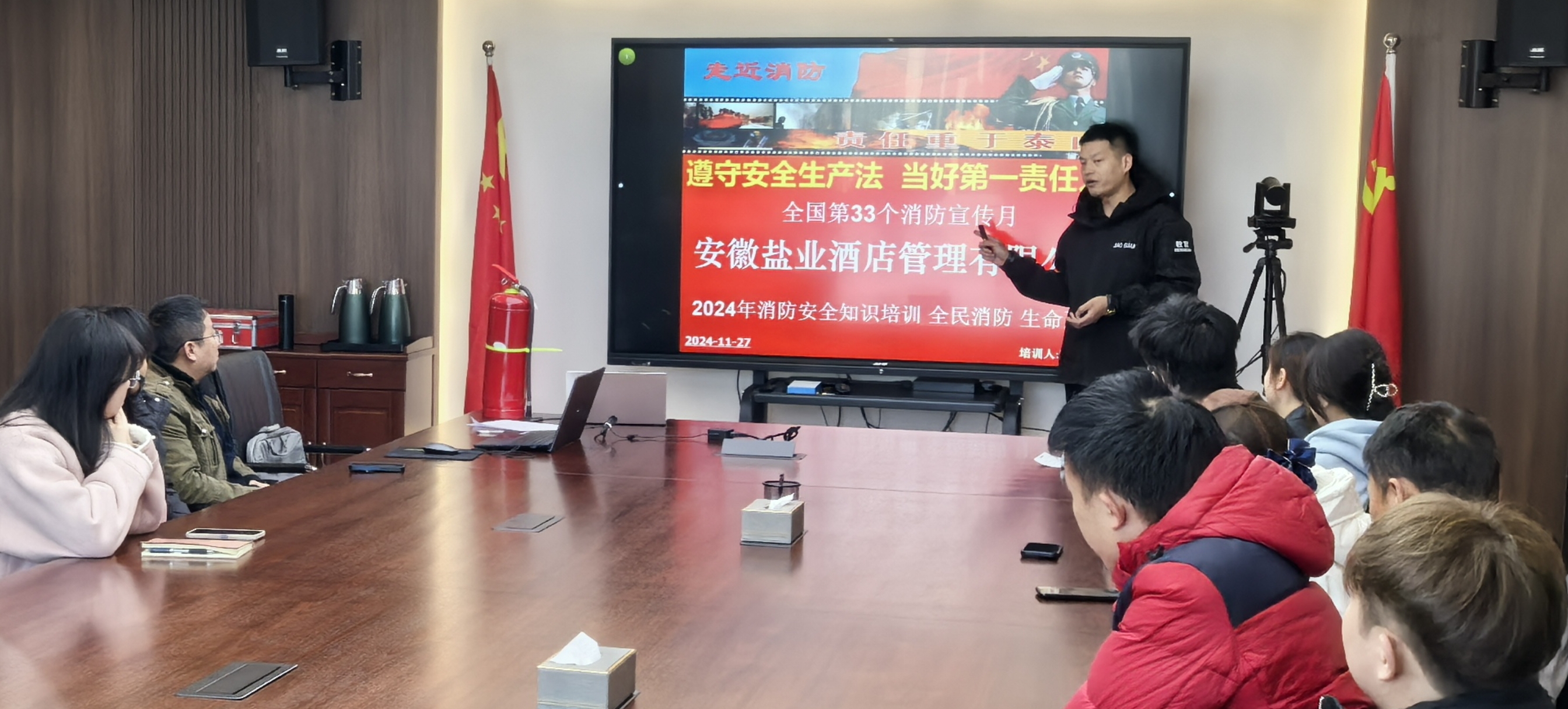 活動中,酒店公司邀請省消防協(xié)會專業(yè)教官講解火災預防、火情處置、火場逃生等事項,現(xiàn)場操作消防器材進行救火流程示范,并觀看2024安全警示片《危險降臨》。重點提升了緊急情況下的人員疏散逃生、初期火災及現(xiàn)場的應急處置能力,防止火災事故擴大,保障人員人身安全和財產免受重大損失。