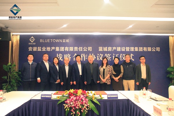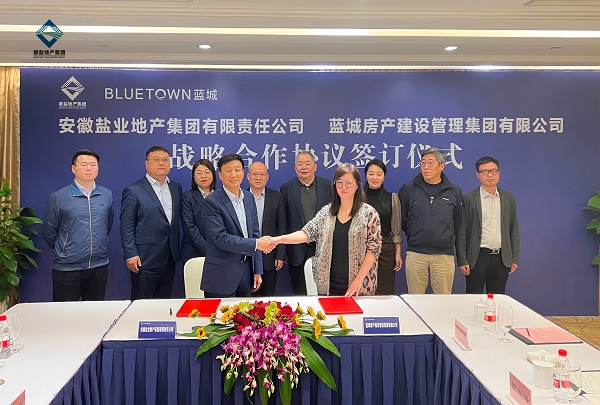 11月2日,徽鹽地產(chǎn)集團(tuán)與藍(lán)城集團(tuán)戰(zhàn)略合作協(xié)議簽約儀式在杭州舉行?;整}地產(chǎn)集團(tuán)負(fù)責(zé)人吳小平、黨委副書記、董事王晟、工會(huì)主席李芳;藍(lán)城集團(tuán)董事長(zhǎng)宋衛(wèi)平,藍(lán)城集團(tuán)副總裁、藍(lán)城藍(lán)本建設(shè)管理有限公司總經(jīng)理袁鳶,藍(lán)城藍(lán)本建設(shè)管理有限公司副總經(jīng)理黃曉嵐等出席簽約儀式。