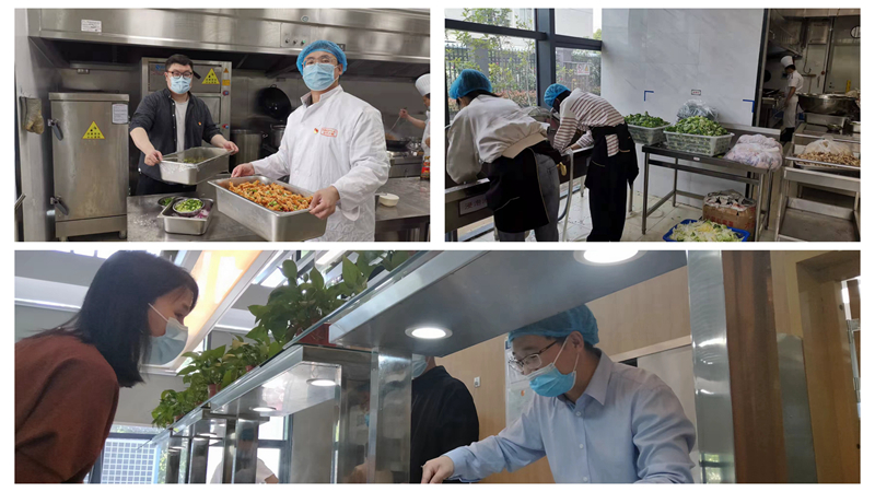 突如其來的疫情,對環(huán)境集團(tuán)職工餐廳產(chǎn)生了較大的影響,超過半數(shù)的餐廳工作人員被隔離在家,而且由于全體員工在公司隔離,一日三餐均需在職工餐廳就餐,面對激增的工作量,餐廳工作人員產(chǎn)生了較為明顯為畏難情緒,面對這一情況,環(huán)境集團(tuán)黨員隊伍沖鋒在前,各支部輪流安排黨員先鋒崗前往餐廳后廚幫忙,在廚師的安排下洗菜摘菜、打飯洗碗,提供力所能及的幫助,全力保障職工每頓都能吃上新鮮可口的飯菜。