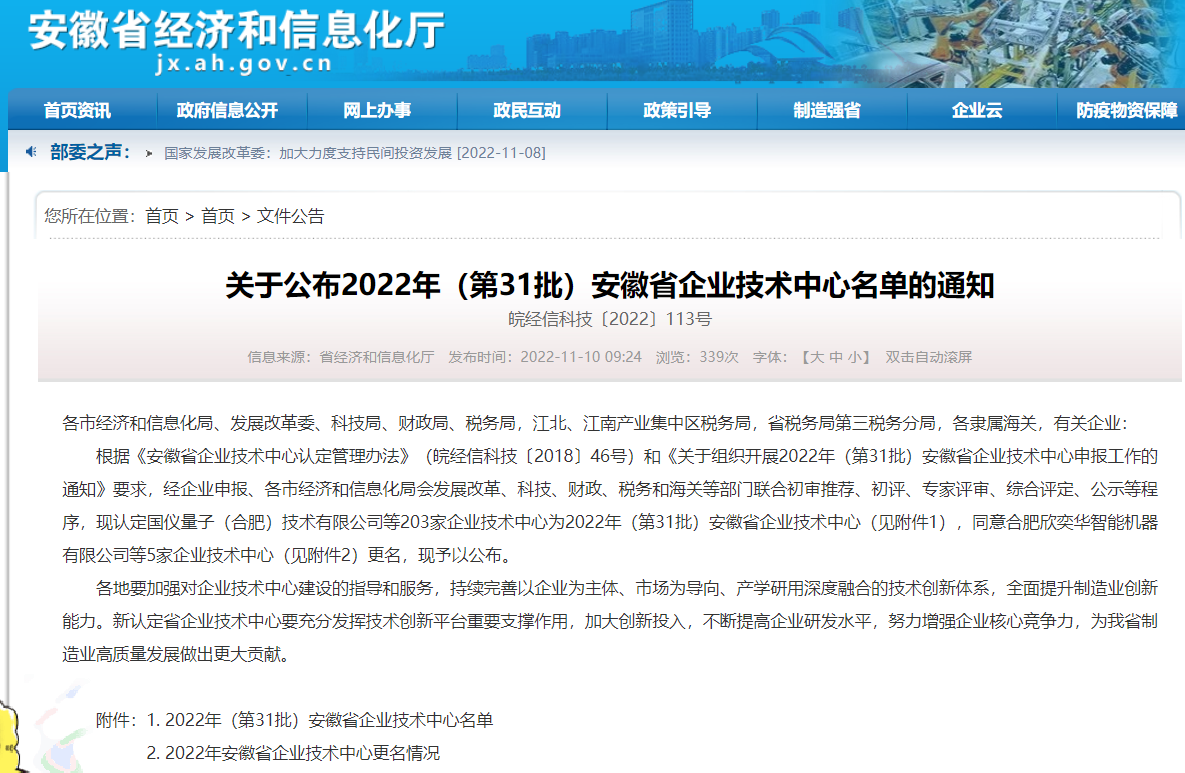 近日,安徽省經(jīng)濟(jì)和信息化廳公布了2022年安徽省企業(yè)技術(shù)中心(第31批)認(rèn)定名單,安徽環(huán)境科技集團(tuán)榮列其中,該榮譽(yù)的獲得彰顯了企業(yè)的綜合競爭實(shí)力以及顯著的技術(shù)創(chuàng)新能力。